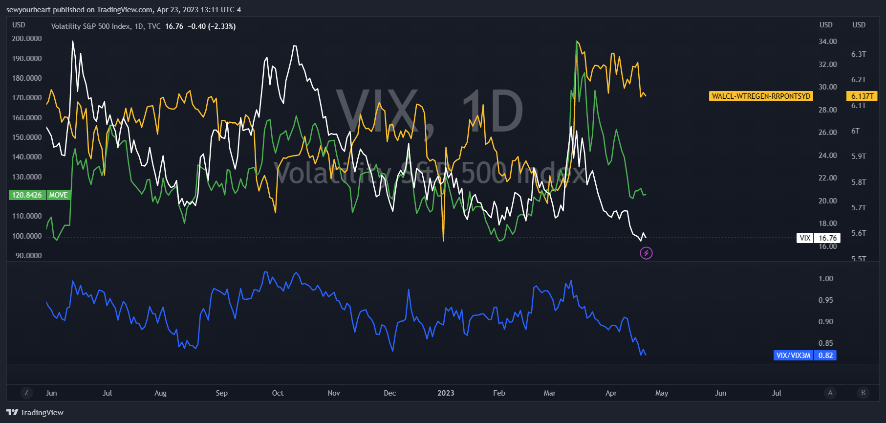Short vol is almost always a profitable trade. However, with the above conditions considered & debt ceiling woes that may need to be addressed as early as late May, it doesn’t seem wise to get too comfortable being short vol here.