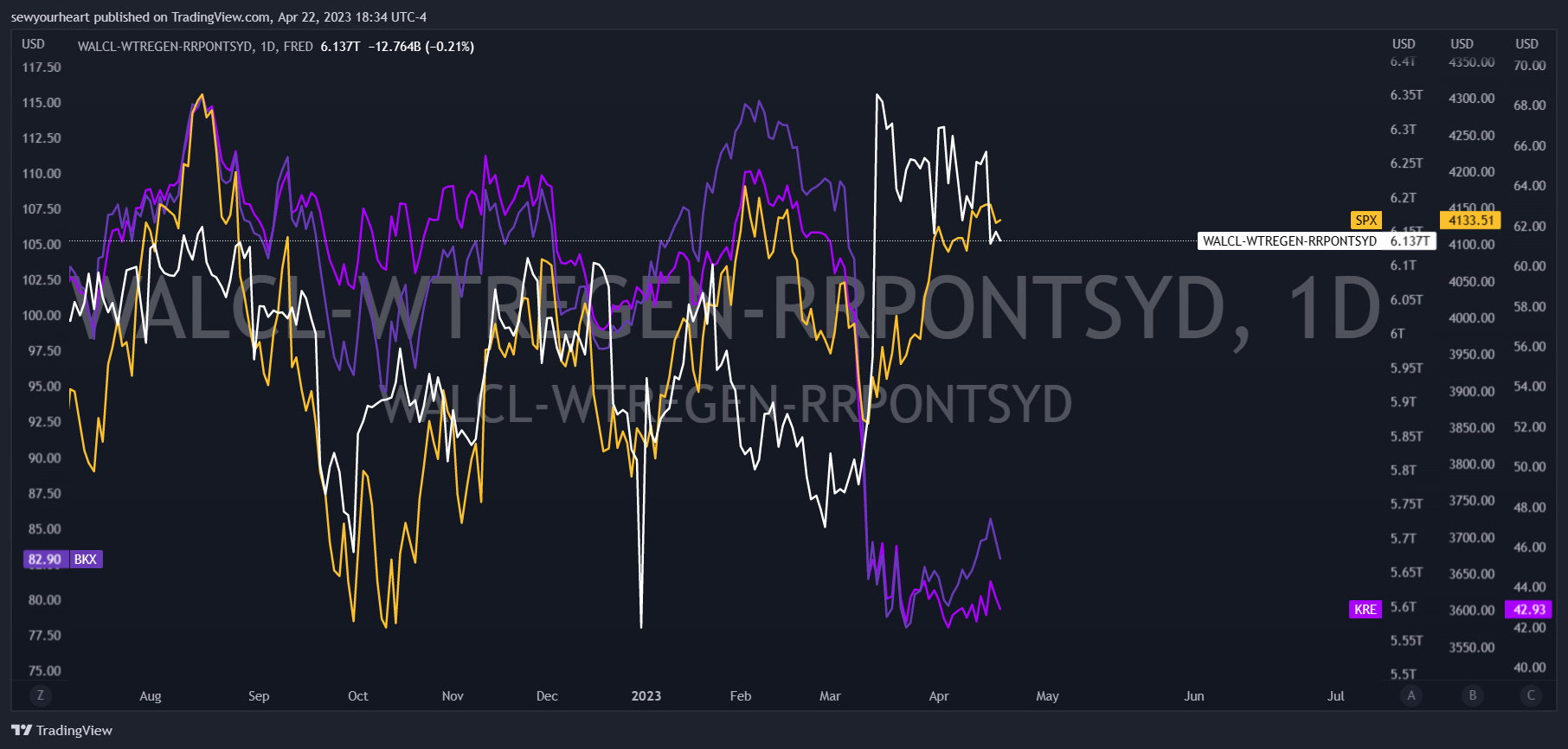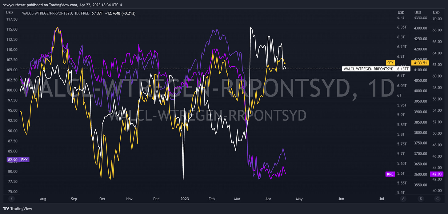 Net liquidity rose considerably amidst the banking crisis, and this prompted numerous claims that QT had ended. Deliberating about whether or not this was QE is pointless. Sentiment & positioning were already heavily skewed to the downside (rightfully so) and many were becoming privy to some of the effects that a historic rate hiking cycle can have on different parts of our financial system. This is the perfect environment for market participants to disregard the regime we’re in.