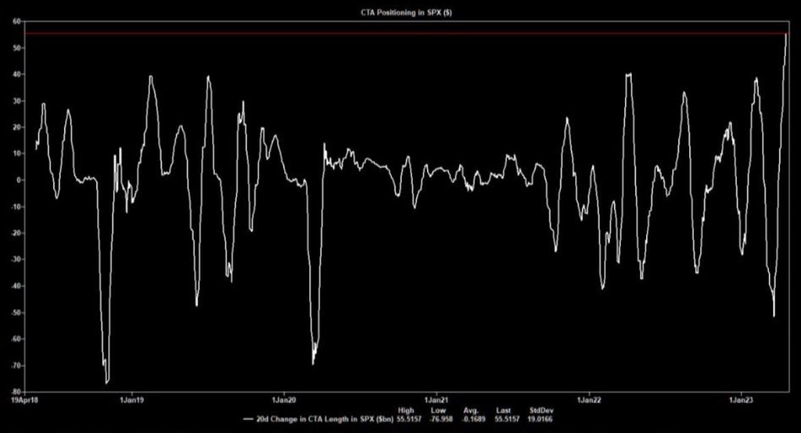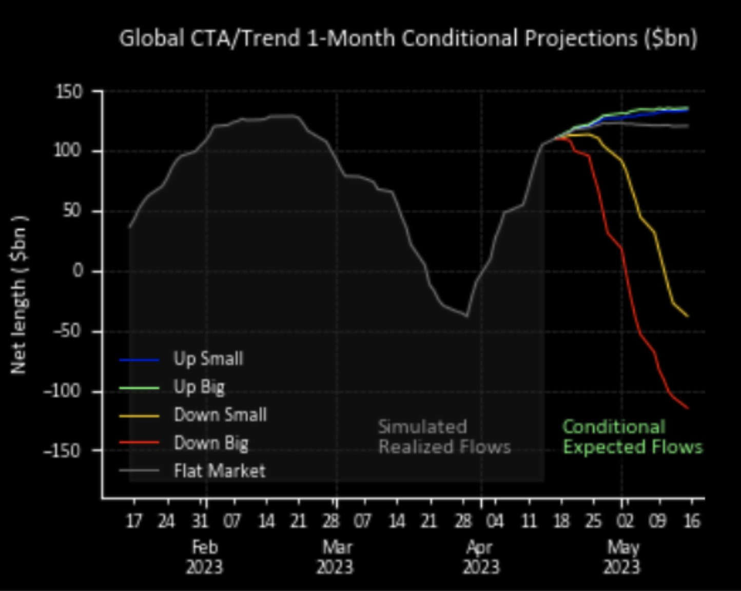CTAs are also heavily long right now (they were heavily short into the banking crisis) and R:R is skewed to the downside into the generals/big tech earnings while vol is incredibly low.