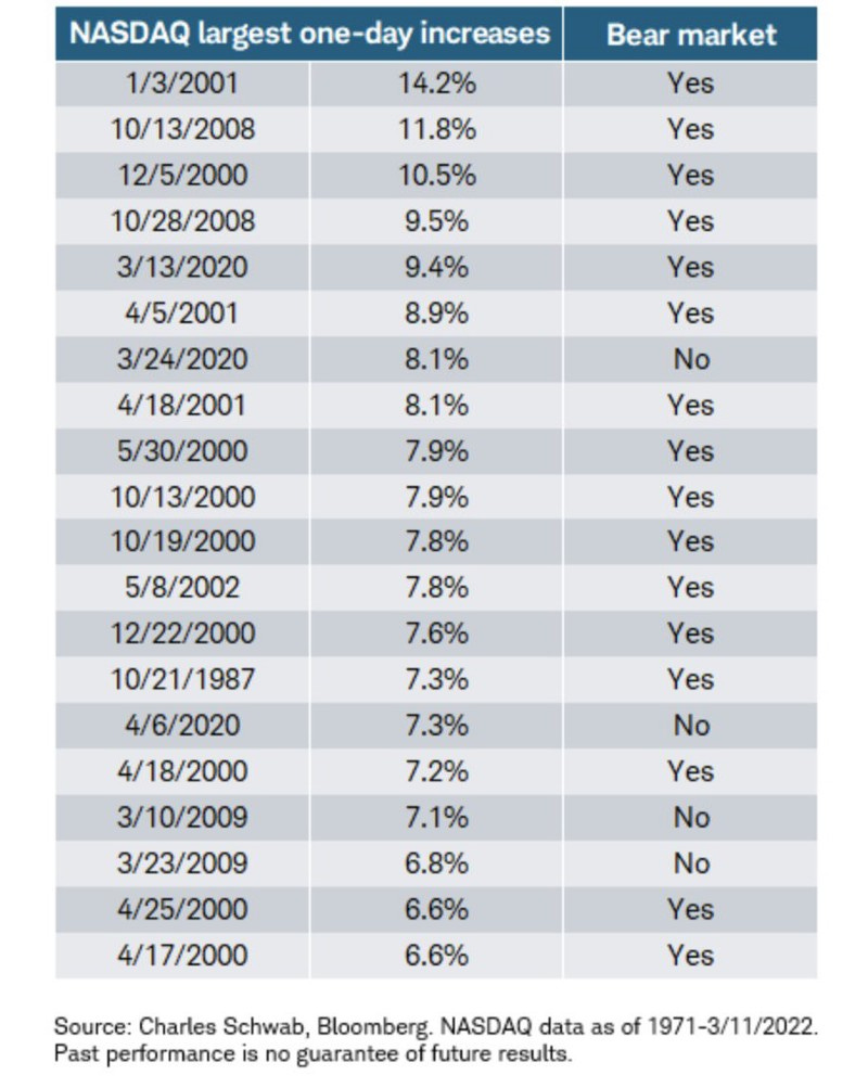Their obstinance forbids them from being able to separate the signal from the noise in a key period. The biggest one-day increases occur predominantly in bear markets. The signal here is that this is standard bear market behavior, while the noise is that this is a bottom because inflation has purportedly peaked, and the Fed will certainly pivot (again).