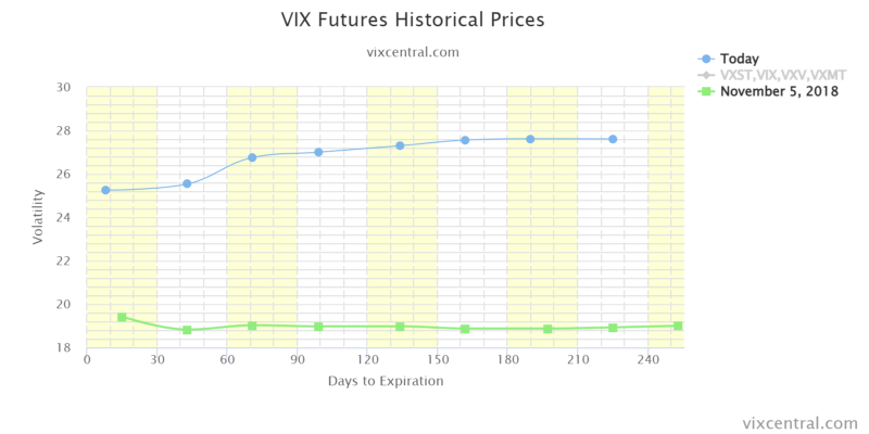 VIX’s term structure is another indicator I use to give myself confluence on trades. In turbulent periods it is not uncommon to see the front end of the curve in backwardation. This means that there is uncertainty amongst market participants. I looked back at the curve during the previous midterm elections in 2018 and I noticed that the front end of the curve was in backwardation.