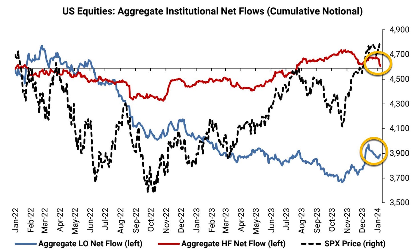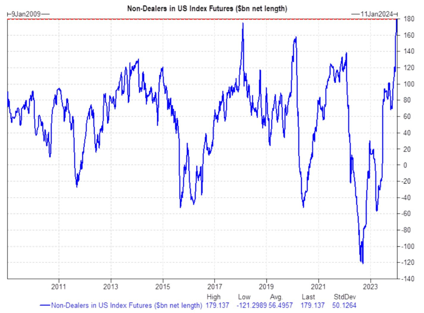 For clarification purposes, think back to my “fade the recession hysteria” call from late July ‘22. Pessimism was through the roof, reflected by positioning; but the economy was not yet entering a recession despite the consensus being that a recession had been declared at the time. Now optimism is through the roof, reflected by positioning; but one can make strong arguments that a recession (inflationary/stagflation) has just started despite the consensus being that a soft landing is all but inevitable.