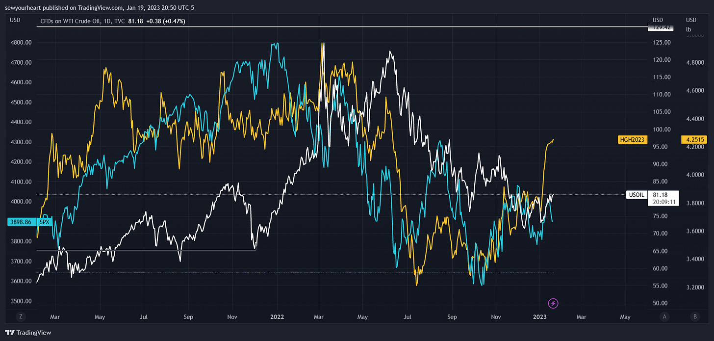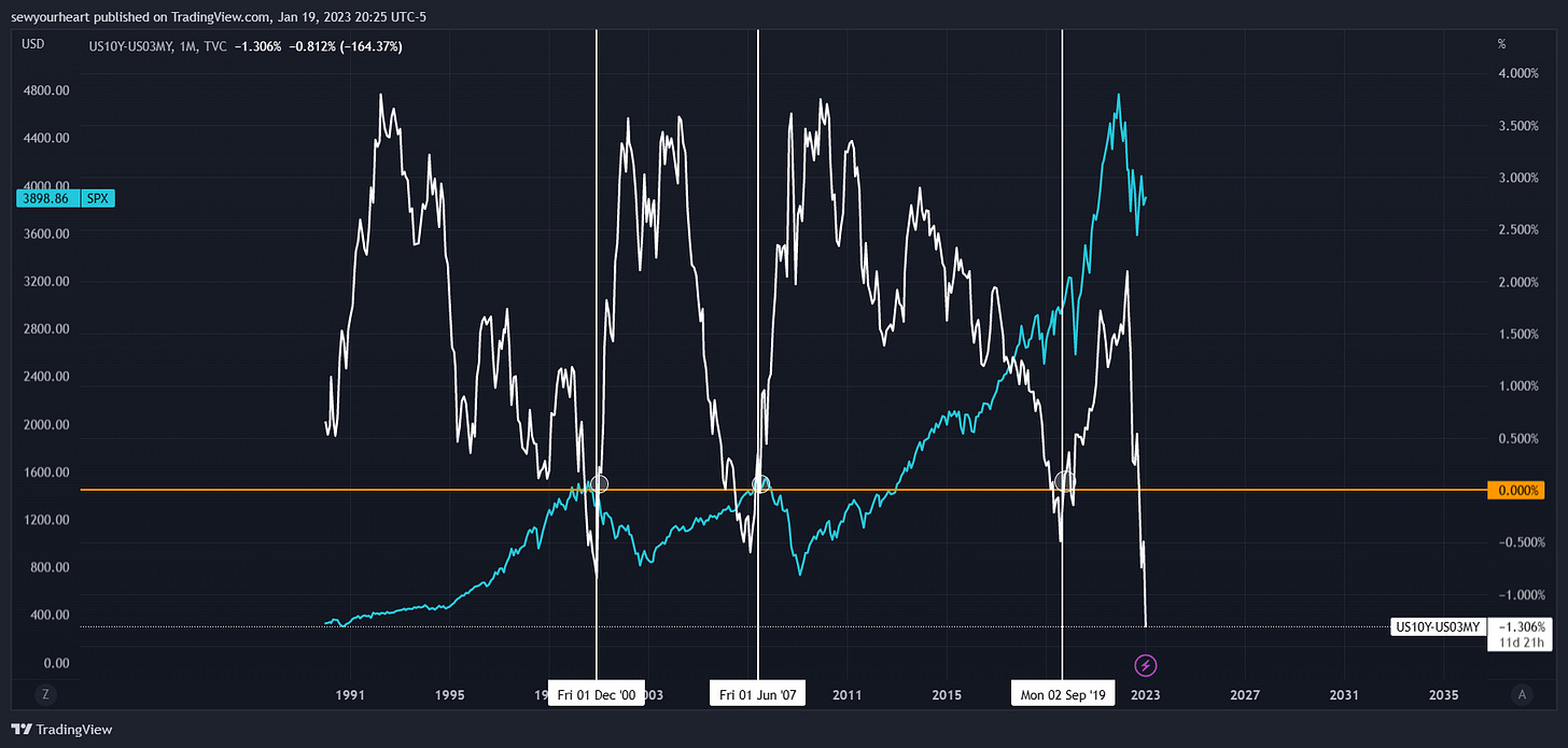 Powell & friends have ostensibly made another major policy blunder by deeming the China reopening a nonfactor. It’s surely difficult for some to trust the Fed now given their transitory inflation mishap, so I’ll reiterate this. Fixate on policymaker constraints instead of preferences. They may not have wanted to raise rates in ‘22 but they had to because inflation became a persistent problem and still is. They will value constraints (no 70s repeat) over preferences here again. No pivot is coming unless SPX is much lower than it is currently. However, a pause may come before a considerable drop. I believe that would be a grave mistake and if it does come, it’s a sell the news event.