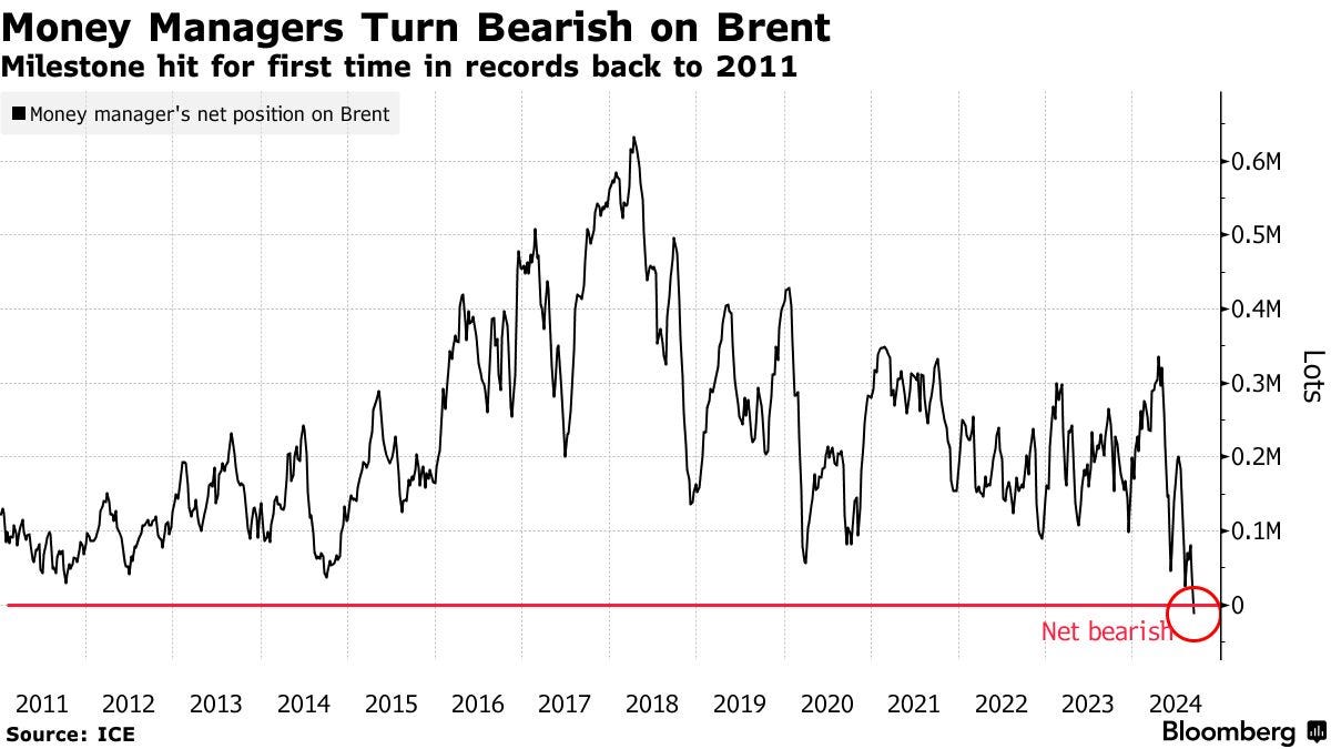 The recent rally of about 5 or 6$/bbl saw a miniscule amount of short covering. Net-length increased by only 4,539 (per staunovo), while headline risk has recently aided in the process of subduing crude prices. Ceasefire deals are purportedly always close to being solidified, but this time Saudi has apparently abandoned its $100 crude target that they never actually had. This is not surprising: