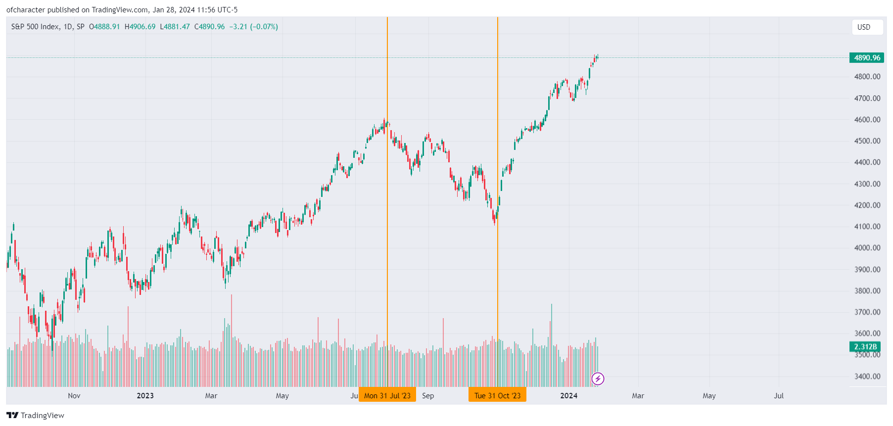 To clarify the Yellen stick save bit, the issuance was below expectations when the market was expecting more, resulting in a rally sparked by rates falling materially. So in an “unforeseen turn of events,” it was rates — yes the same rates that so many said didn’t matter for the first half of the year — that ignited this rally. This means that the long-term outlook has not changed at all whatsoever, while the short-term did so drastically. —