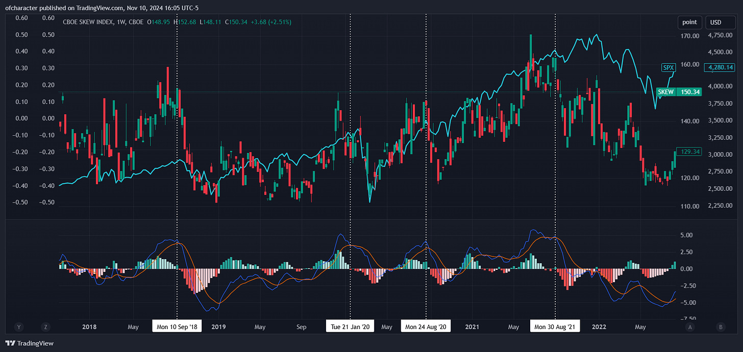 Entered Feb QQQ put spreads on 10/23 and closed 50% of them by the eod. Trimmed 75% of this by the close on 11/1 and left the rest on into election day and took a loss on the last bit of them after that historic post-election trading day. Got modestly short via March SPX put spreads on 11/8 since upside vol is still vol, I can’t remember a post-election VIX crush of this proportion, and SKEW’s still falling (more on this later). This is, of course, still a rental and I expect to take some pain.