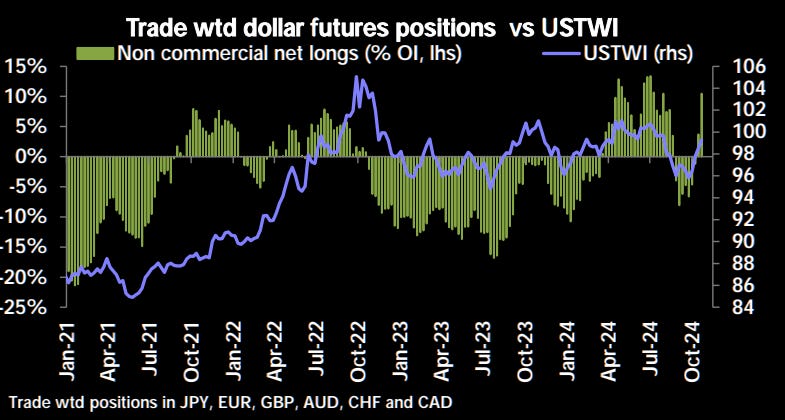 Since the last wrecking ball update, positioning in two of its components has changed substantially. For starters, the USD has seen a notable increase in longs.