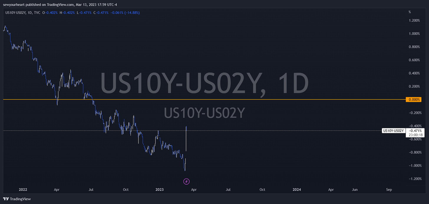 And the 2s10s steepener trade played out beautifully. This is a sign of distress in the financial system and the consequent desire for interest rate cuts in response to it.