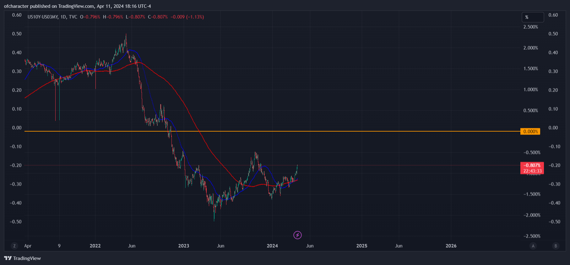 And the bear steepener is still intact. It’s been more prevalent in the 3m10y spread than in the 2s10s spread recently.