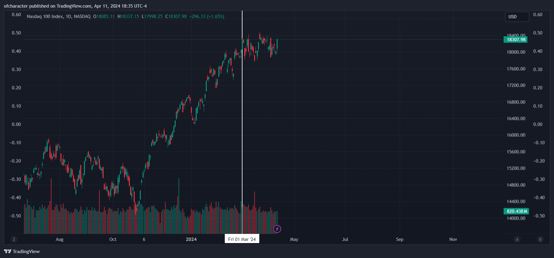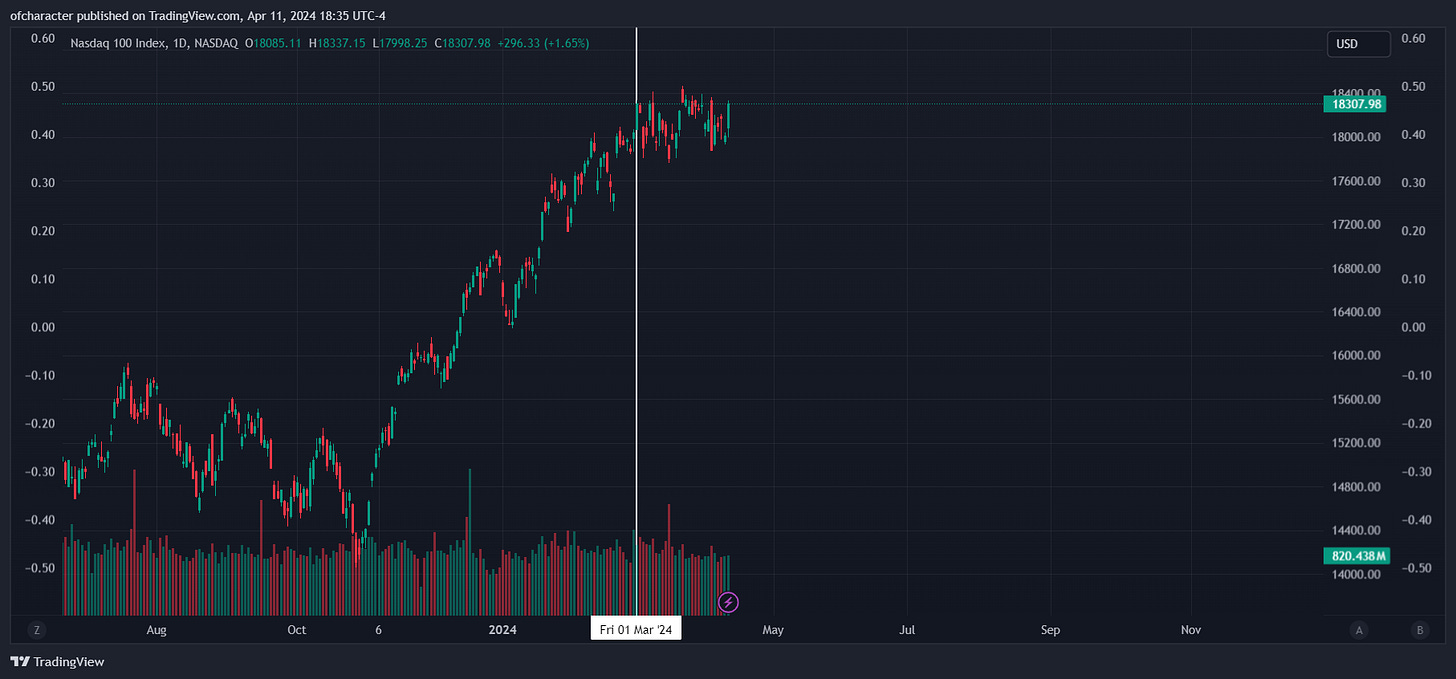 And once again, NDX has gone absolutely nowhere since March 1st.