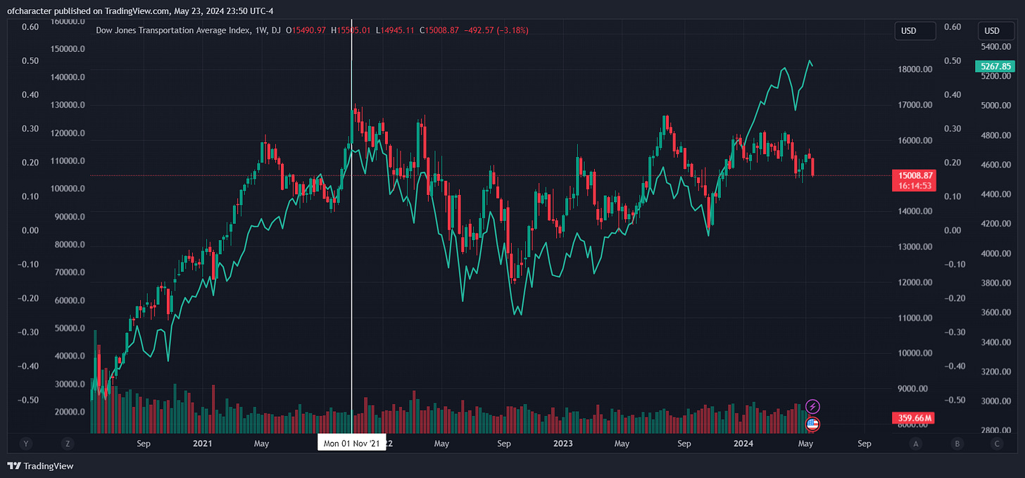 You are seeing this correctly. Transports have not made a new high since November 2021. This is the longest this divergence has held.