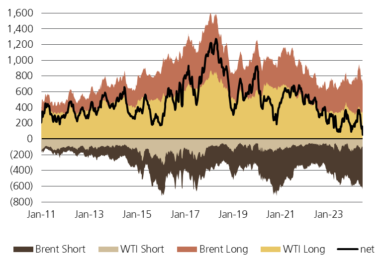 I finished building this position earlier this week (Sept/Oct expiry) and have sized as aggressively as I did last time. Below is net positioning on both Brent & WTI. Notice anything?