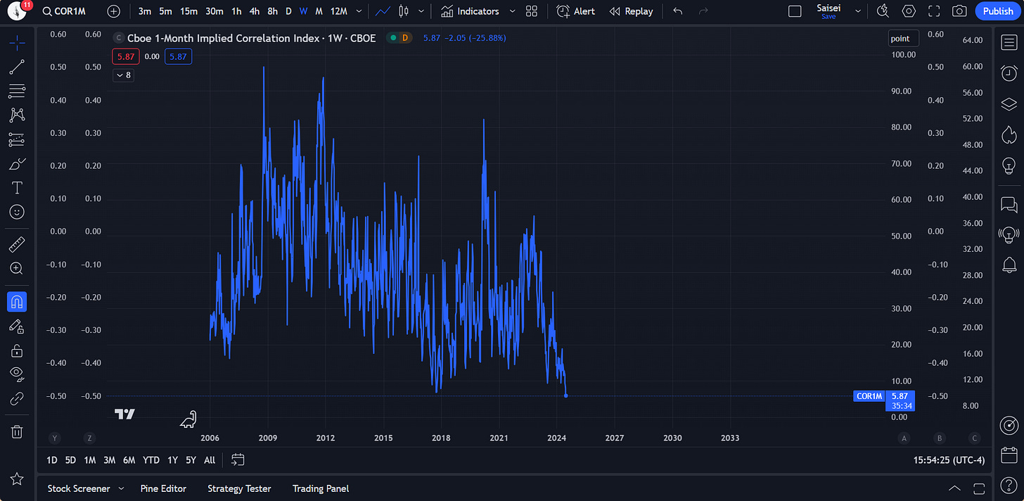 Correlation is not only at record lows, but this is the first time it has been this low with the yield curve inverted. Another “first ever”