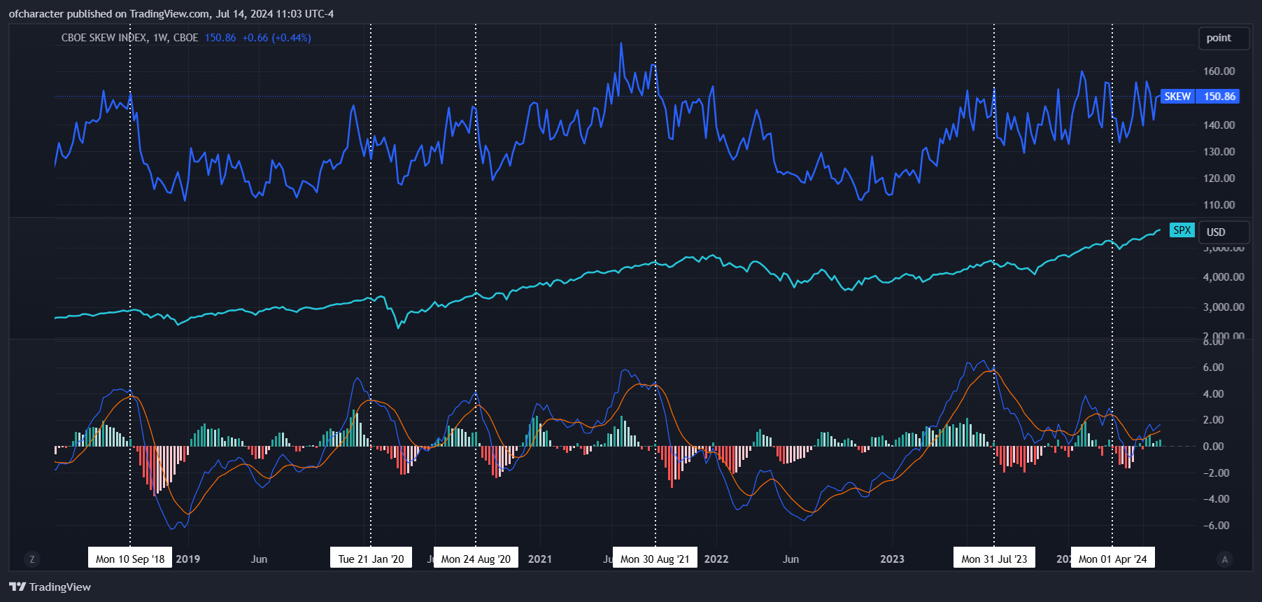 Skew should simultaneously start to drop as we enter this period. It serves as confluence for a correction.