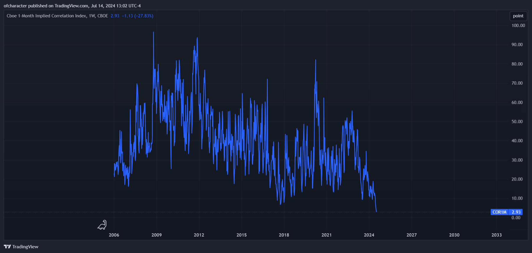 And implied correlation is at levels where VIX reached single digits in 2017. New record lows in COR1M showing that everyone is prepared for the continuation of summer madness…