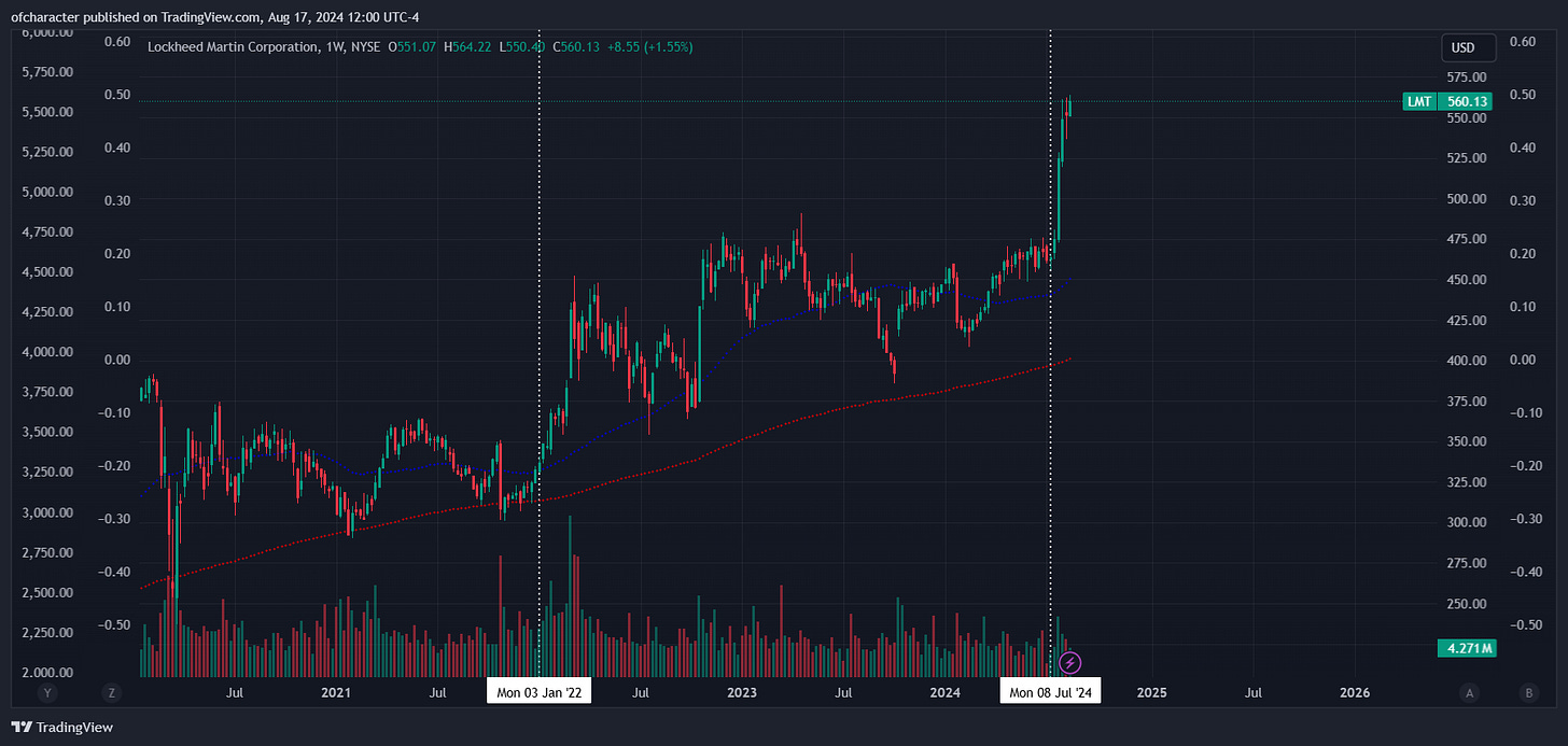 The broader market was selling off aggressively early ‘22 while LMT quietly outperformed. Needless to say, the present resemblance is uncanny.