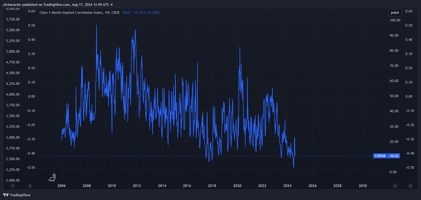 You can find a plethora of these signs under the “Summer Madness” tab of this publication. If there were only two signs that I could point to, they would definitely be implied correlation and positioning. This is what those looked like ahead of this historic vol market shock: