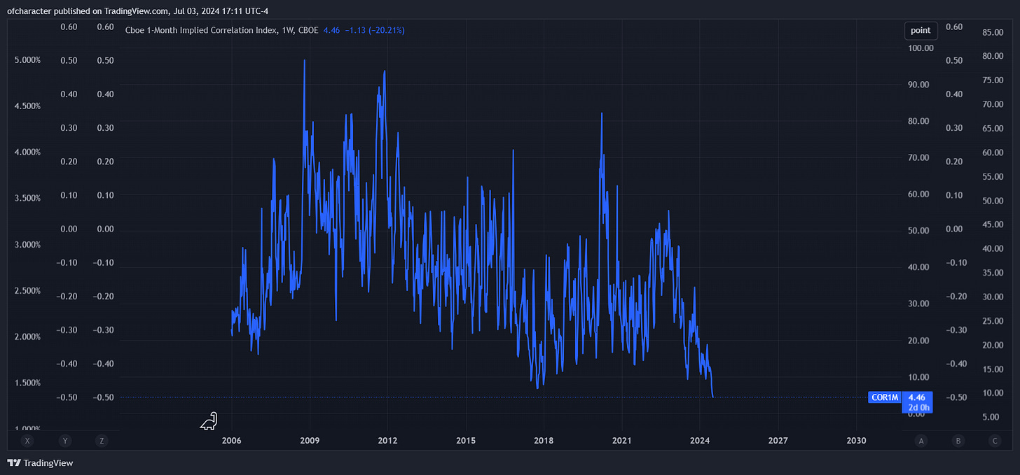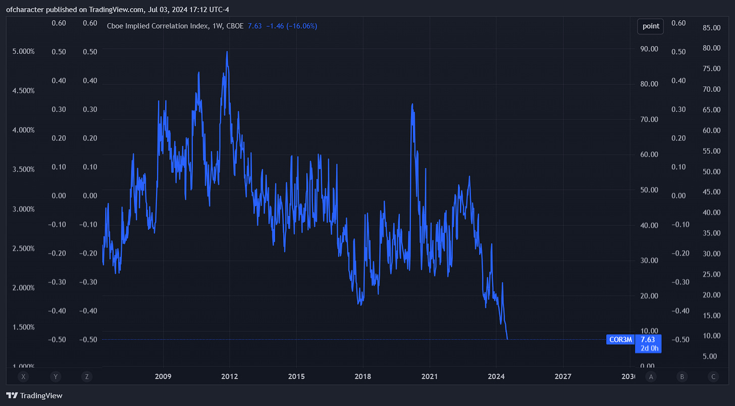 Implied correlation made new lows again.