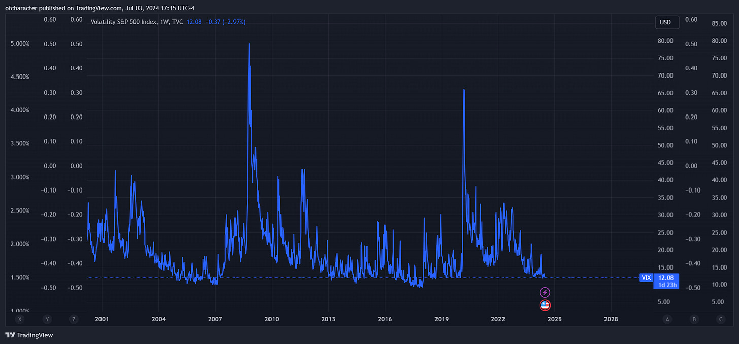 Naturally, the VIX has been relatively muted.