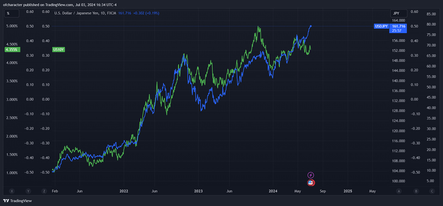 The beatings will continue until…who knows at this point? There will be lucrative opportunities to both long & short the yen in the foreseeable future. I think it’s safe to say that the longs will be short-lived in comparison — unfortunate for Japan. Something else to note is the correlation between this and rates.
