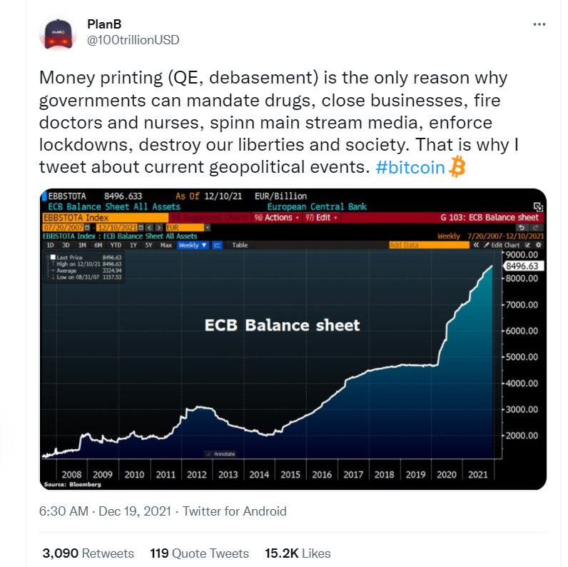 There is already evidence that Tether has been artificially pumping the price of Bitcoin. — Is Bitcoin Really Un-Tethered? by John M. Griffin, Amin Shams :: SSRN — There isn’t a representation of authentic demand from investors here, yet people like Michael Saylor tell you that Bitcoin is an “oxygen mask.” This artificial pumping is similar to how QE Infinity works.