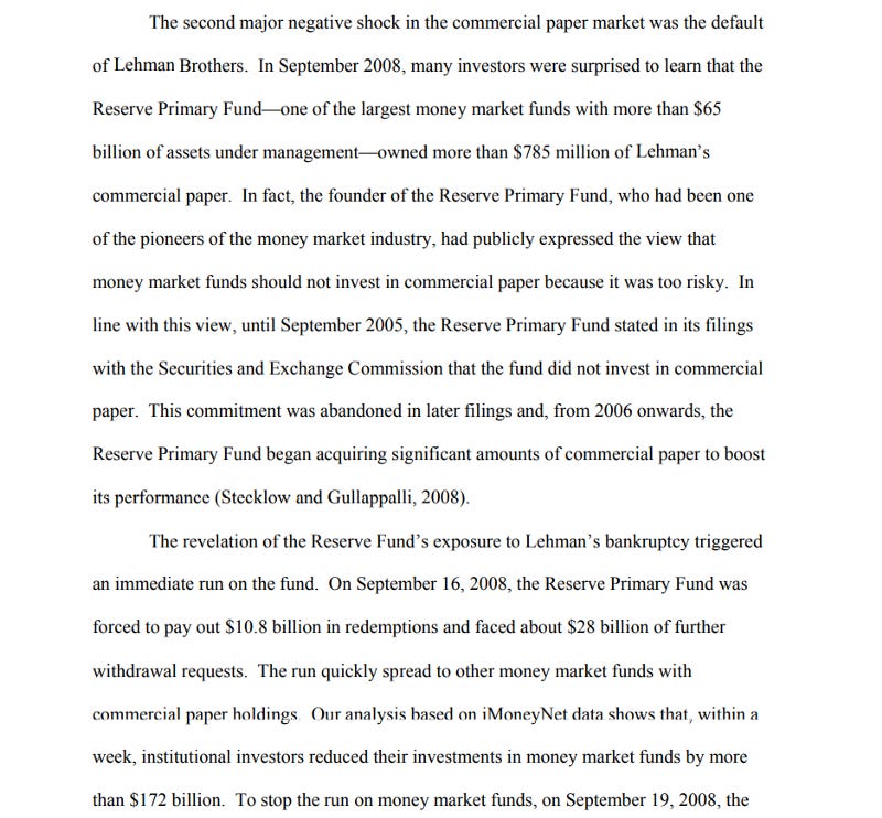 I believe we’ve seen something like this already in a previous Shmita year. In a short paper titled “When Safe Proved Risky: Commercial Paper During the Financial Crisis of 2007–2009” by Marcin Kacperczyk and Philipp Schnabl, they highlight a very important part of the 2008 financial crisis.