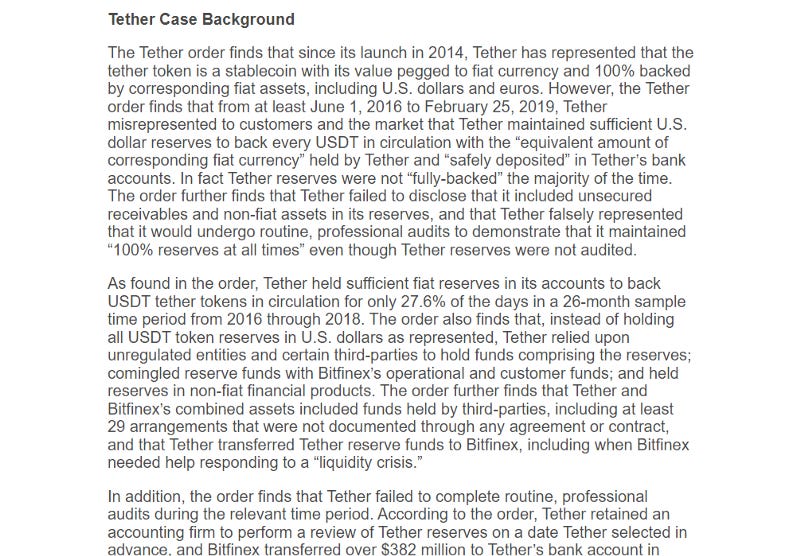 A major problem with Tether is that it claimed to be fully backed by USD when it wasn’t.