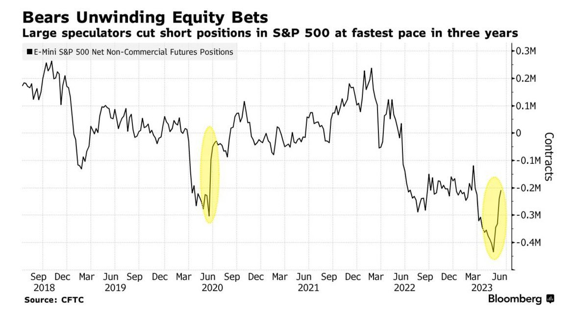 SPX — Shorts beginning to throw in the towel at the perfect time. Coincides with the narrative shift.